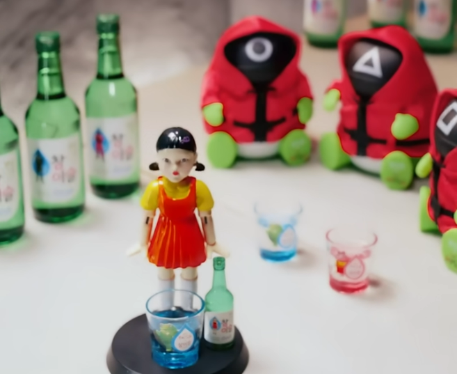 이밖에도 에디션 제품과 함께 선보인 협업 굿즈 4종 △영희 게임기 △핑크가드 두꺼비 피규어 △컬러잔 △앞치마 관련 문의도 쇄도하고 있습니다. 특히 ‘오징어 게임’ 시리즈의 대표 게임인 ‘무궁화꽃이 피었습니다’를 착안해 만든 ‘영희 게임기’는 술자리 재미 요소를 극대화해 MZ세대 취향을 사로잡았습니다.