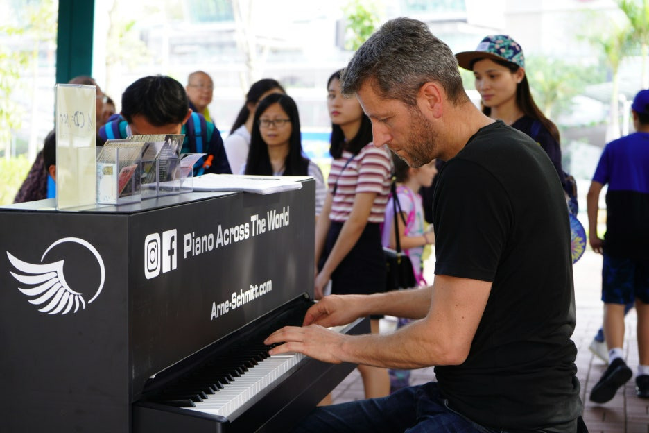 거리 피아노는 거리를 지나는 누구라도 자유롭게 연주할 수 있도록 설치되었습니다. 다른 악기와 비교해 가격이 비싸고 부피가 커 가정에 구비해놓기 어렵기 때문에 지역 당국이나 악기 제조 업체들이 복지 차원에서 무료로 제공하는 것입니다.