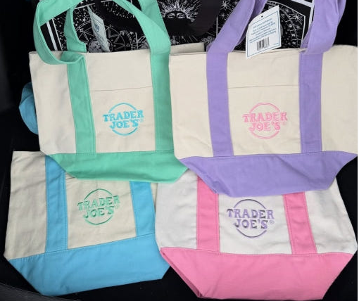 트레이더 조가 이번에 출시한 미니 캔버스 토트백은 핑크, 블루, 민트 그린, 라벤더 등 파스텔톤의 봄맞이 색상으로 크기는 약 13인치 x 11인치 x 6인치로, 작은 장보기, 도시락 가방, 또는 선물용으로 적합하다고 합니다.