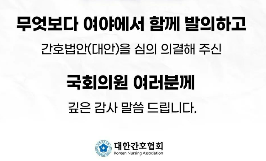 이에 반해 대한간호사협회는 2005년 국회 입법으로 시도된 후 무려 19년 만에 이루어진 매우 뜻깊고 역사적인 사건이라고 평가하고 간호 돌봄체계 구축과 보편적 건강보장을 실현해 나가는 길이 열리게 되었다고 환영했습니다.