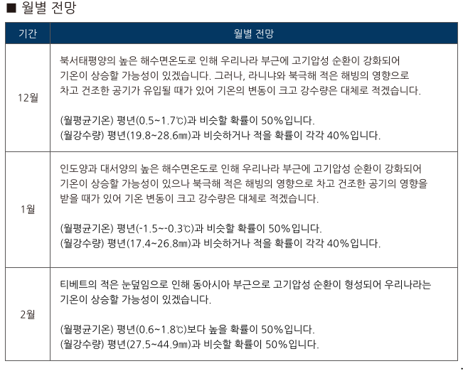 그러나 온난화가 단순히 제트기류를 느슨하게 만드는 것이 아니라 오히려 강화할 수 있다는 것이 올해 유독 더운 가을을 통해 증명됐습니다. 더운 바다로 인해 우리나라 주변 고기압 발달이 잦아지며 북쪽 찬 바람을 막는 역할을 했고, 올겨울도 이런 양상이 지속될 것이라고 입장이 바뀐 것입니다.