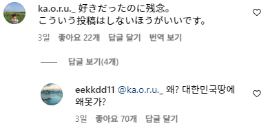 이에 일본인으로 추정되는 네티즌들은 일본어로 “다케시마에 오신 걸 환영한다” “팔로우를 취소했다” “이런 건 올리지 않는 게 나을 뻔했다” 등의 악성 댓글을 남겼다고 합니다.