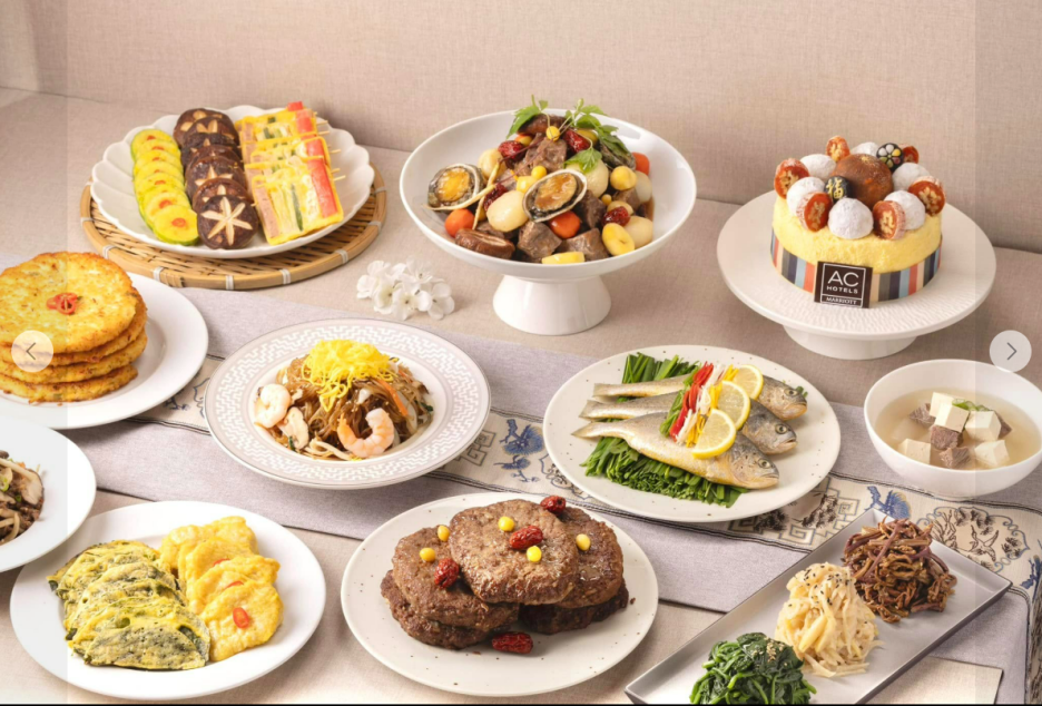 AC호텔 바이 메리어트 서울 강남에서도 명절 상차림 4인-6인용 ‘AC 명절 투고’ 세트를 33만원에 판매합니다. ▲모듬전(오미산적, 깻잎전, 호박전, 표고전, 두부전, 생선전, 새우전, 해물 파전, 연근전, 고추전 ) ▲녹두전 ▲잡채 ▲전복 소갈비 찜 ▲조기 구이(부서) ▲삼색 나물 ▲소고기 탕국 ▲나박김치 ▲딸기 떡 케이크 등 총 20가지 메뉴로 구성되어 있습니다.