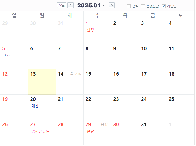 최근 일부 지방자치단체장을 비롯한 일부에서 “27일이 아닌 31일을 임시 공휴일로 지정해야 한다”는 주장이 나왔습니다. 이 경우 연휴 기간은 1월 28일부터 2월 2일까지가 됩니다. 기간은 엿새로 같지만, 설 당일 후에 몰아 쉬는 게 차이입니다.