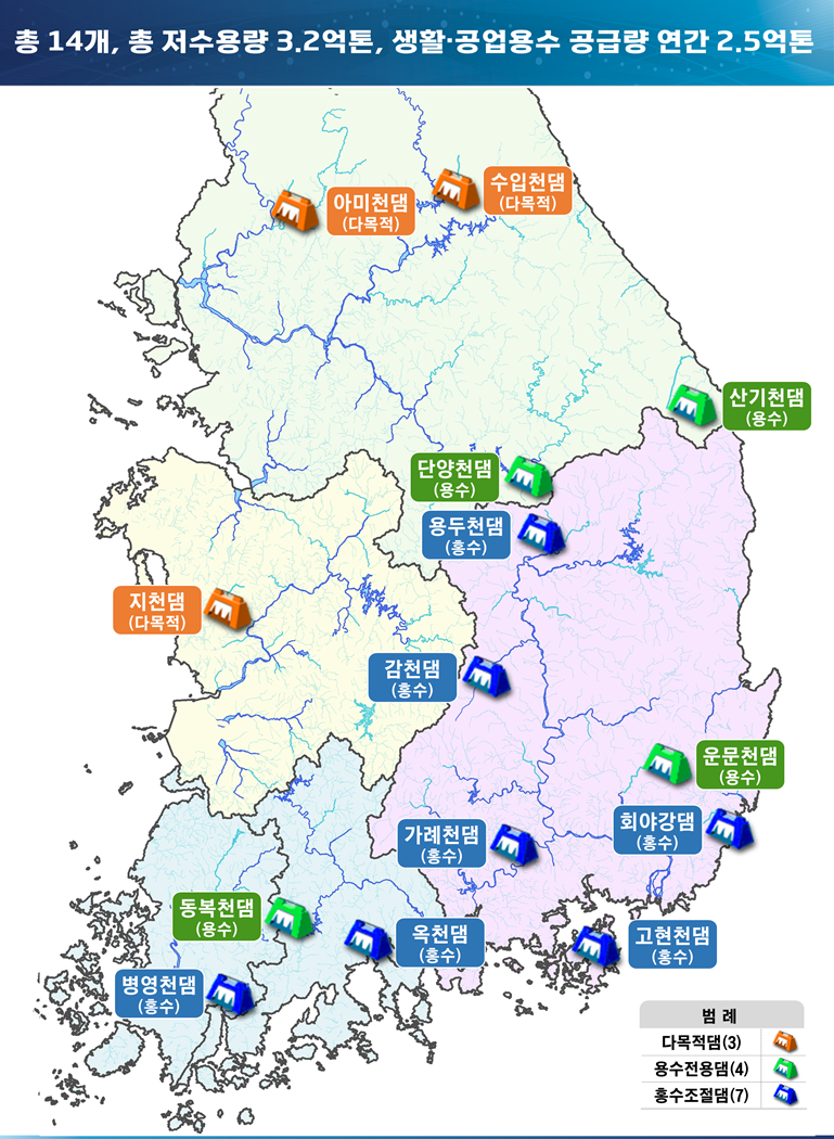 이번 댐 추진으로 총 저수용량은 3억2000만t 늘어나고, 생활·공업용수 용량은 연간 2억5000만t이 늘어나게 된다고 합니다. 2억5000만t은 220만명이 사용할 수 있는 규모입니다.