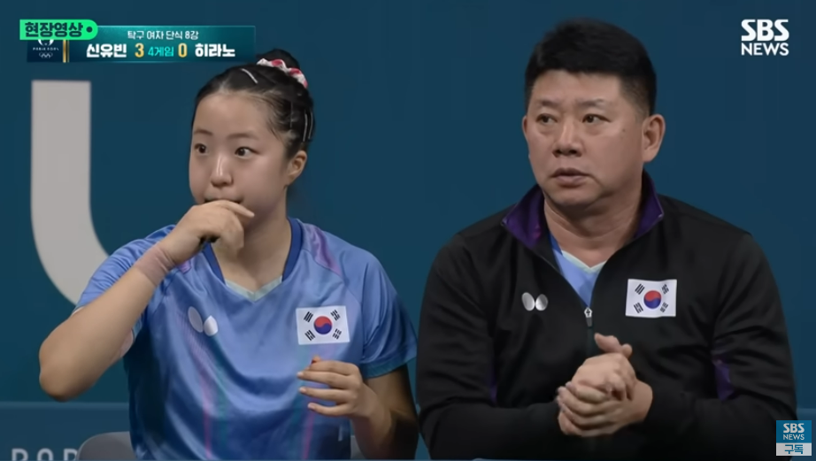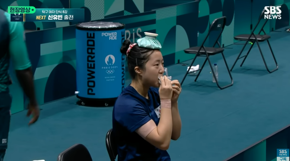 1일 밤 온라인에는 ‘오늘도 여전한 신유빈 먹방’ 등을 제목으로 한 게시물이 널리 공유됐습니다. 여기에는 신유빈이 얼음팩을 머리 위에 올린 채 에너지 젤을 먹는 모습, 오광헌 감독이 이야기하는 와중에 신유빈이 바나나를 꺼내 먹으며 고개를 끄덕이는 모습 등이 담겼습니다.