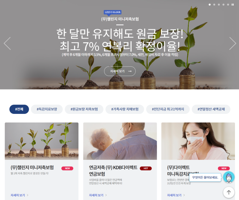 KDB다이렉트보험 사이트 캡쳐