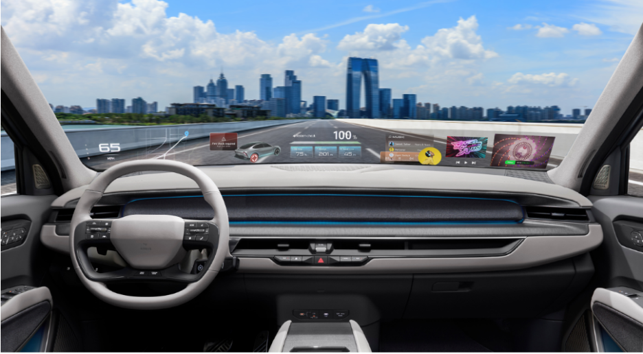 홀로그래픽 HUD는 운전석부터 조수석까지 이어지는 넓은 공간에 각종 주행 및 편의, 인포테인먼트 콘텐츠를 선명하게 표시하는 게 기술의 핵심입니다. 주행 속도나 내비게이션 경로, 과속 안내 등 비교적 간단한 정보만 표시했던 기존 헤드업 디스플레이에서 획기적으로 진화한 기술이라고 합니다.