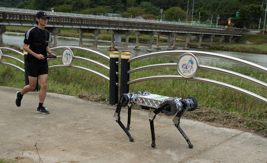 상주 곶감 마라톤은 14km 지점과 28km 지점에 고도 50m 수준 언덕이 2회 반복되는 코스로, 아마추어 마라토너들에게도 난도가 높은 것으로 알려져 있습니다. 보행 로봇에게는 예상치 못한 힘 손실이 발생할 수 있어 도전적인 과제였습니다.