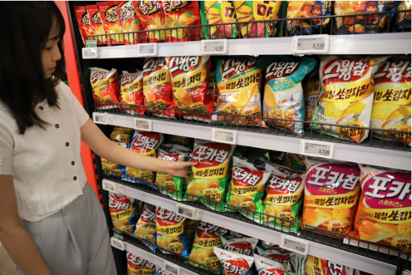 오리온은 포카칩·스윙칩·꼬북칩부터 신제품 뉴룽지까지 인기 스낵 7종을 1000원에 판매합니다. 오리온이 1000원 균일가 스낵을 선보인 것은 이번이 처음이라고 합니다. 기존에 대형마트에서 팔던 포카칩 66g(1500원)의 용량을 50g으로 줄이고 가격을 1000원으로 맞췄습니다.
