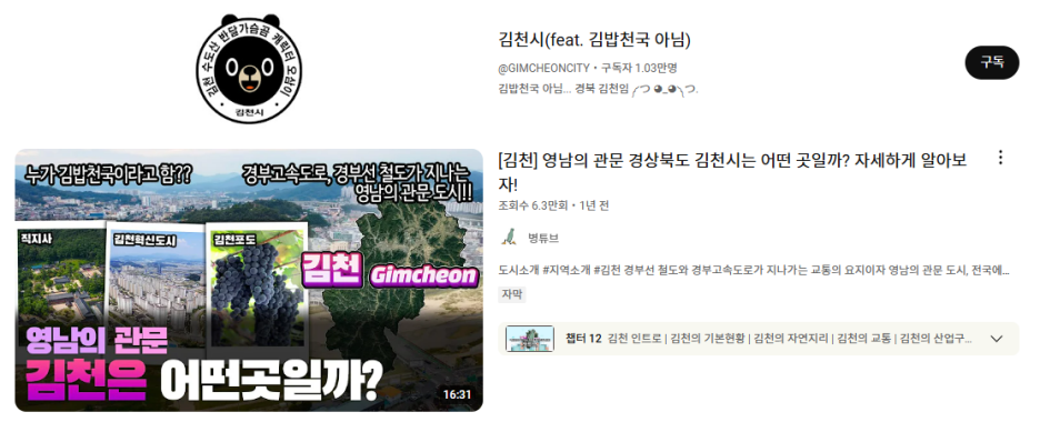 시는 유튜브 공식 계정 이름도 ‘김천시(feat. 김밥천국 아님)’로 설정하는 등 적극적인 홍보에 나섰습니다.