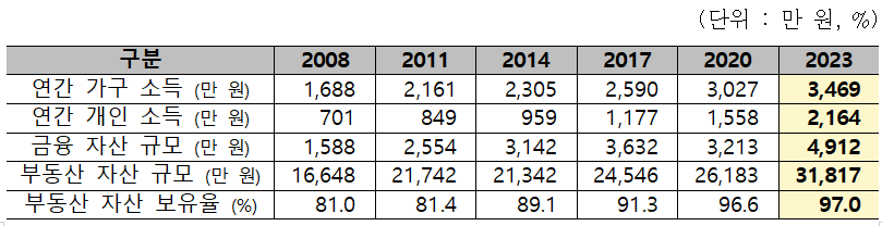 따라서 전문가들은 평균 자산이 늘어나고 있음에도 빈곤층 비율이 유지되고, 1인 가구가 지속적으로 증가하는 현상에도 주목해야 한다고 지적합니다.