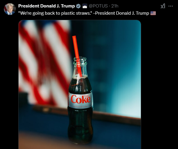 트럼프는 “연방 정부가 종이 빨대 구매를 중단하고, 각 정부 건물에서 종이 빨대가 제공되지 않도록 적절한 조치를 취하라”고 했다고 합니다. 이어 국내 정책 담당 보좌관이 각 기관과 협력해 ‘종이 빨대 사용 중단을 위한 국가 전략’을 45일 안에 발표하라고 지시했습니다.