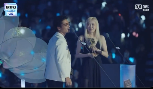 그룹 블랙핑크의 로제와 듀엣곡을 발표한 미국 팝스타 브루노 마스가 국내 음악 시상식 ‘2024 마마 어워즈’에 참석했습니다.