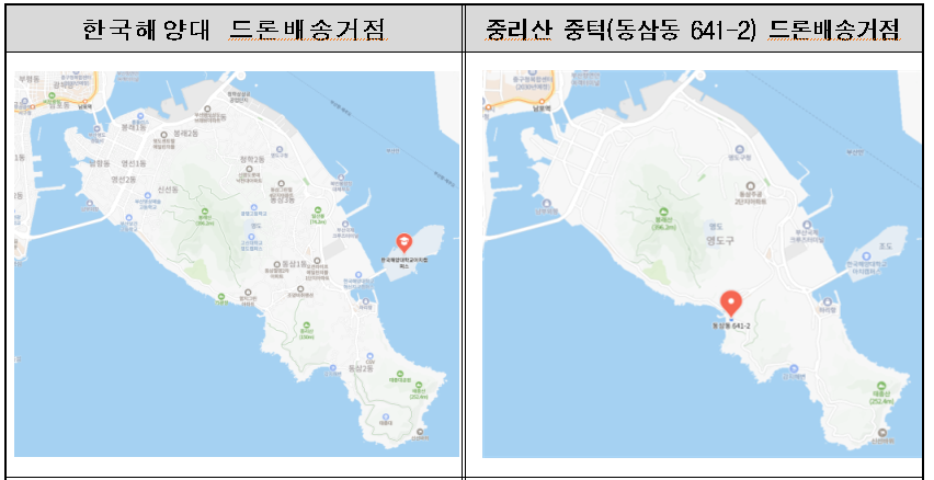 드론이 출발하는 배송거점센터는 영도구 동삼동 한국해양대, 동삼동 중리해녀촌 인근 등 2곳입니다.