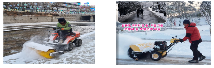 공원과 하천 보행로엔 사람이 끌고 다니면서 눈을 치울 수 있는 소형 제설 기계 117대를 투입합니다. 보도와 이면도로 등에도 소형 제설 기계 543대를 투입하고, 도로 구간별로 담당자를 지정해 제설을 맡긴다고 합니다.