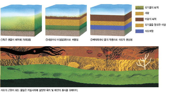 석유는 지구상에서 플랑크톤이 등장하기 시작한 수억 년 전의 지질시대에서 만들어지기 시작했다. 중동지역의 석유는 대부분 공룡의 활동무대가 되었던 중생대 쥐라기와 백악기 때 만들어졌으나, 영국-노르웨이의 앞바다인 북해유전에서는 고생대층에서도 석유가 발견된다