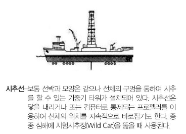 1932년에는 처음으로 시추장비를 장착한 고정식 구조물(Platform)과 시추 지원선박이 출현하였으며, 계속하여 시추장비를 장착한 갑판을 상,하 이동할 수 있는 승강식 시추 구조물(Jackup)이 등장하였다. 석유의 발견이 해안에서 멀어지게 됨에 따라 수심이 더 깊은 곳에서 시추작업을 필요로 하게 되었다. 이에 따라 1953년에는 최초로 시추장비를 설치한 선박(Drillship)이 등장하였다. 1962년에는 안정성이 보강된 반잠수식 시추구조물이 출현하여 오늘날 일반적으로 사용되고 있다.