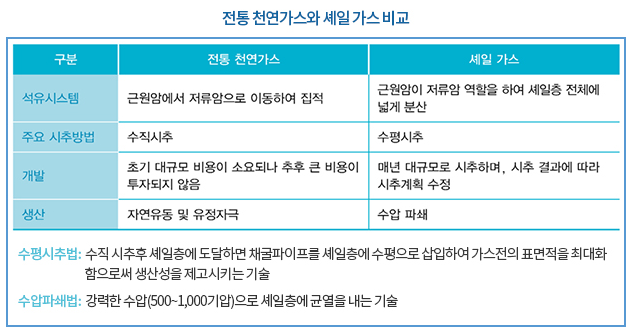 2000 년대 이후 수평시추 및 수압파쇄 기술의 혁신에 따른 생산성 증가 및 국제유가 상승 등으로 북미지역을 중심으로 셰일 가스 개발이 확대되기 시작하였다. 셰일 가스는 진흙이 굳어진 퇴적암석층(sedimentary rock formation) 안에 갇혀있는 메탄가스이며 혈암가스 라고 부르기도 한다. 셰일 가스는 지하 100~2,600m에 걸쳐 다양한 심도에 미세한 진흙이 수평으로 쌓인 후 탈수되어 생성된 혈암 또는 이암에 배태(胚胎)되어 있는 천연가스이다. 전통 천연 가스와 셰일가스는 개발 생산의 방법, 난이도 및 지질 특성이 다르며 또한, 기존의 전통적인 방식으로는 경제적인 생산이 어려워 수평시추 및 수압파쇄 등의 신기술을 적용하여 생산한다.
