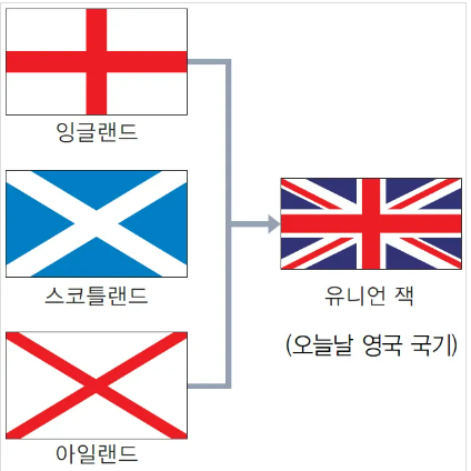 영국의 국기는 잉글랜드, 스코틀랜드, 아일랜드의 기를 합치며 만들어졌습니다.