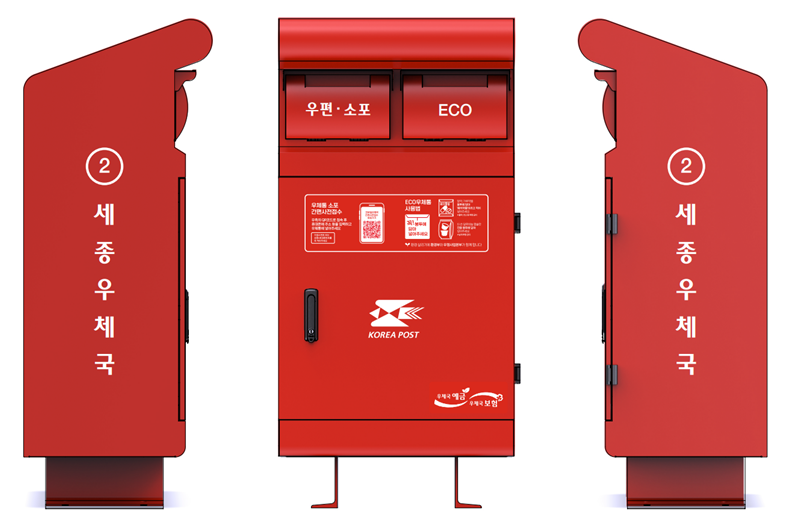 우정사업본부는 ‘우편·소포 접수’와 ‘폐물품 회수’를 모두 담당하는 새로운 형태의 ‘ECO(에코) 우체통'을 도입합니다. 새 우체통에는 각기 다른 용도의 투입구 두 개가 달려있습니다. 한쪽은 일반·등기 우편과 작은 소포를 받고, 다른 한쪽은 폐의약품과 폐커피캡슐을 수거하는 용도입니다.