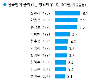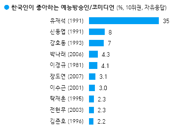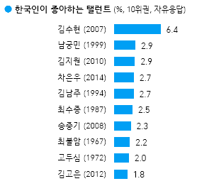 한국인들이 가장 좋아하는 -가수/탤런트/영화배우/예능방송인·코미디언/만화가·웹툰작가/유튜버