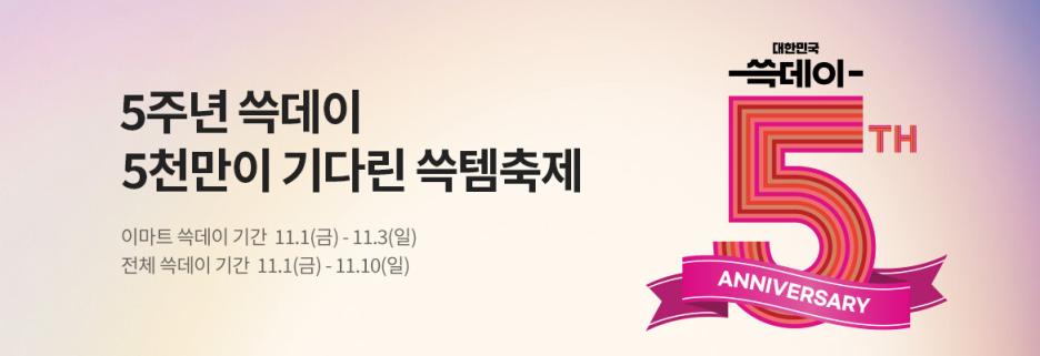 1일 이마트를 비롯해 신세계그룹 계열사 18곳이 할인 판매하는 행사(쓱데이)를 시작하였습니다. 쿠팡은 800여개 브랜드가 참여하는 최대 70% 할인 판매하는 와우 빅세일을 시행하고 있습니다. 롯데쇼핑(땡큐절)은 이미 지난달 29일과 31일 각각 할인 행사를 시작했고, 11번가(그랜드 십일절)도 이날 대규모 할인에 들어갔습니다.