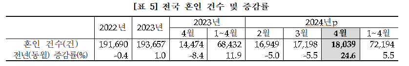4월 결혼건수 25% 증가, 역대 최대...이유는?